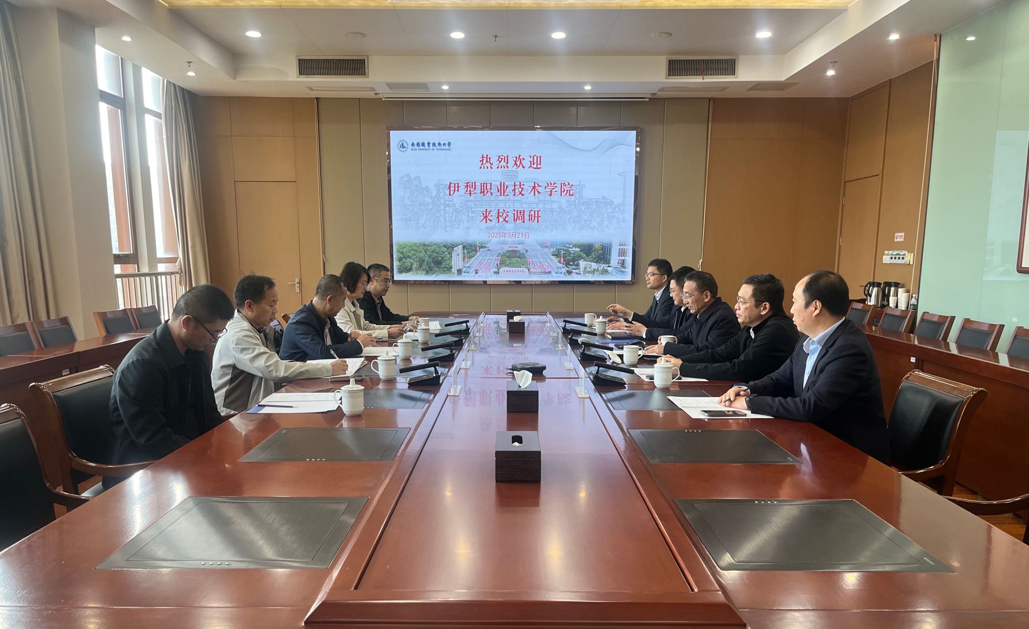 3月21日下午,伊犁职业技术学院党委书记胡毅涛一行来校调研交流。我校党委书记龚方红、副校长储开峰,发展规划处、执纪审查处、教务处等相关部门负责人参加座谈。