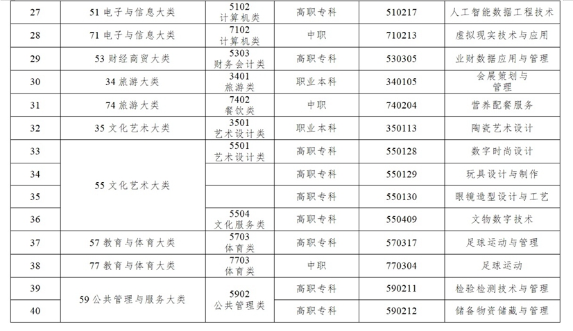 今天,教育部更新发布了《职业教育专业目录》,共增设40个新专业,其中,中职专业3个、高职专科专业20个、职业本科专业17个,增设数量是自2021年新版《职业教育专业目录》发布以来最多的一年。