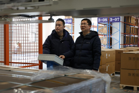 摸准行业产业需求,技术服务送到企业。春节前夕,无锡职院科技产业处处长钱晓忠一行再次来到常熟开关制造有限公司(以下简称:常开),与智能工厂仓储物流团队成员一起,为断路器成品智能仓储中心项目交付进行最后的调试。